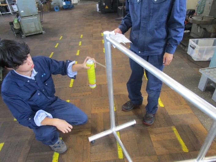 どちらの作品も生徒たちが「世の人の役に立つものを作りたい」と、5月に春日保育所の園長先生に「何か作って欲しいものはありますか?」と聞きに行き、保育所から作って欲しいと言われたものを、いろいろと試行錯誤して製作しました。