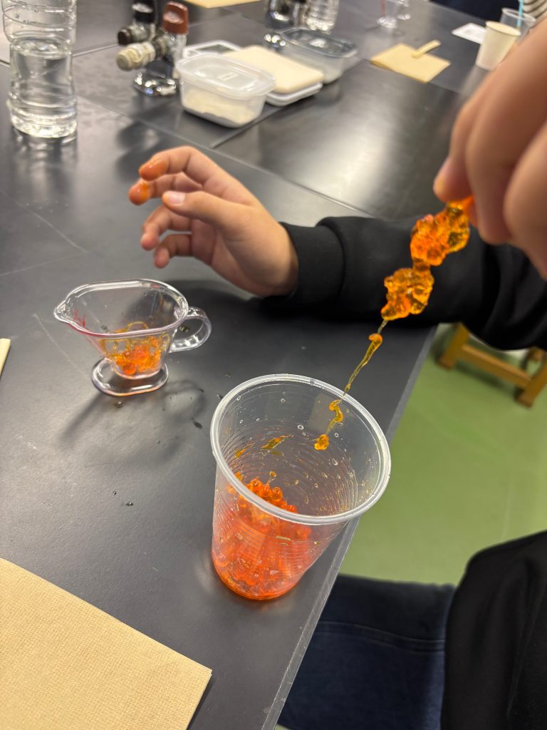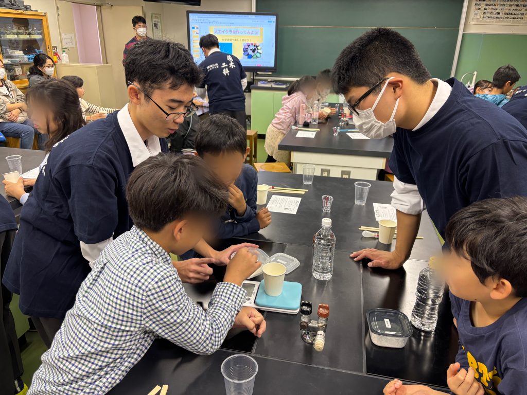 実験教室は2部制で実施され、会場は終始にぎやかで大盛況となりました。参加した小学生たちは、カラフルな人工いくらを見て歓声をあげ、手で触れたプチプチとした感触を楽しみながら、科学の不思議を身近に感じていました。