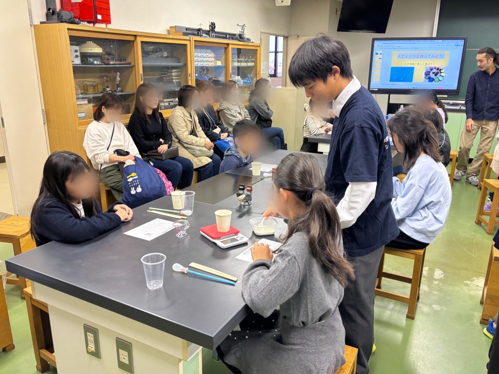 令和7年11月9日(日)、本校は茨木市教育委員会との連携により、相馬芳枝科学賞作品展示企画・科学実験教室「カラフル人工いくらをつくろう!」を実施しました。