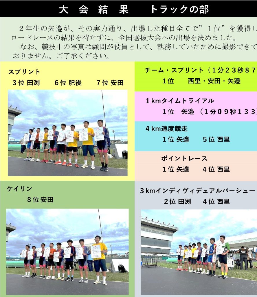 自転車競技部「令和7年度 新人大会兼全国選抜大会選考会」トラックの部 結果報告