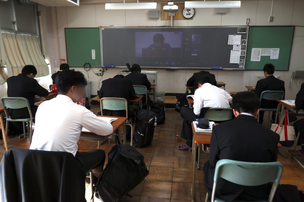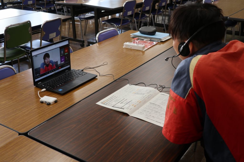 また、当日は感染症の流行と低気温の状況を踏まえ、密集を避けるために各教室を接続したオンライン形式へと切り替えました。オンラインでの進路説明会は本校として初めての取り組みです。